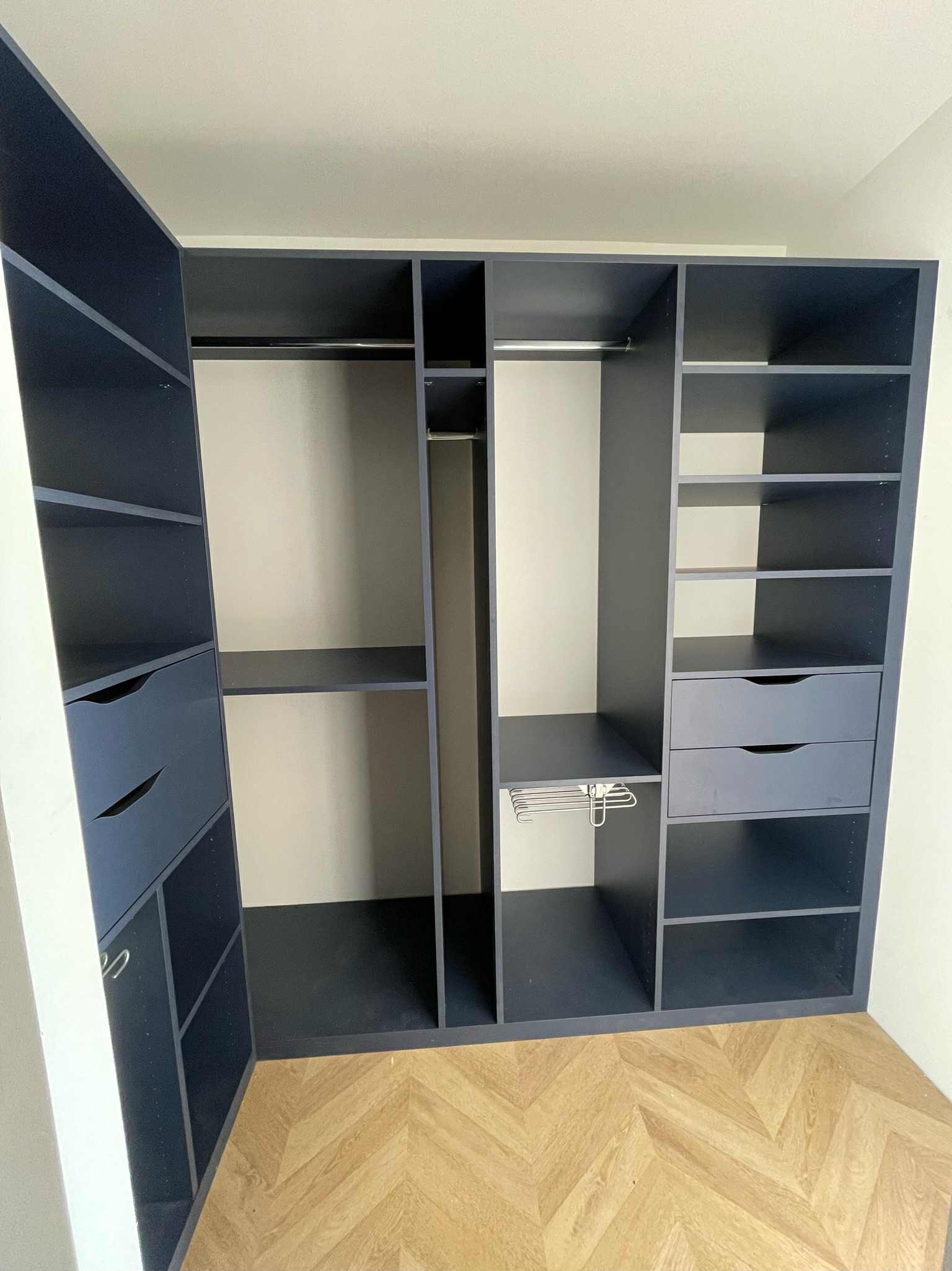 Un dressing pensé et dessiné par Les P’tits Aménagements de Perrine – Décoratrice d’intérieur, fabriqué par l’un de nos partenaires spécialisés AMBIANCE DRESSING et posé par notre équipe de menuisiers poseurs. Un travail d’équipe qui offre un aménagement optimisé, de haute qualité et d’une finition impeccable !
